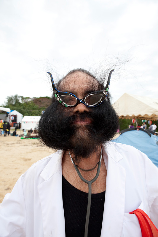 いきなり?!! 白衣を着てひげをサングラスに巻き込んだ状態で