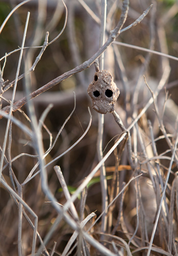 なんかの卵? 芥屋ビーチ近くの雑草の中に、ガイコツ発見!