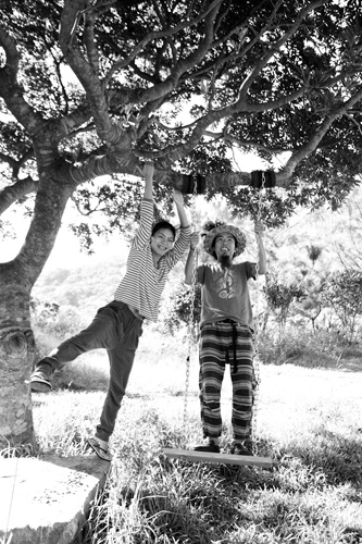 山の上のかわいいお家にあるブランコから