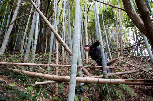 この日は、まだ地面から顔を出す前のタケノコの探し方を