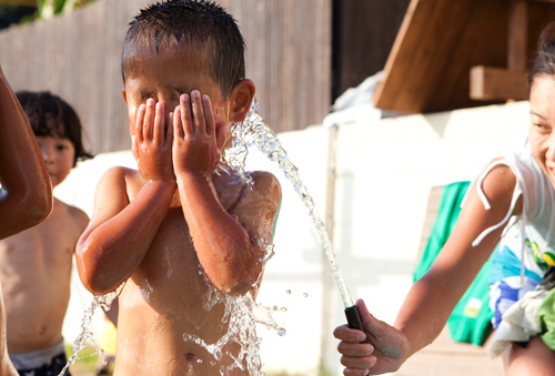 子供たちも大喜び! ぬるい海から上がった後は