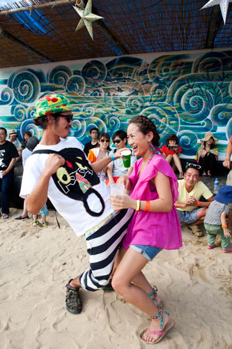 エゴラッピンも毎年のように来てくれてる。 今年はビーチステージの、夕暮れどきだぁ〜キモチイイィ!!