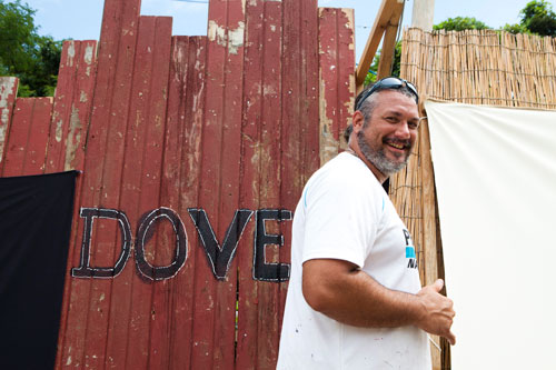 もうすっかり常連。Sunset Liveの顔、James Dover氏。 パームステージ横の大きなキャンバス壁には 彼と、彼の小さな弟子たちの ライブペイントが、いっぱいに広がっていた。