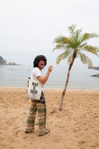 ビーチステージでの熱いライブを終え 一服中の、Theatre Brook・佐藤タイジ。