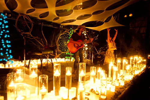森のステージでの東田トモヒロは、たくさんのキャンドルと。