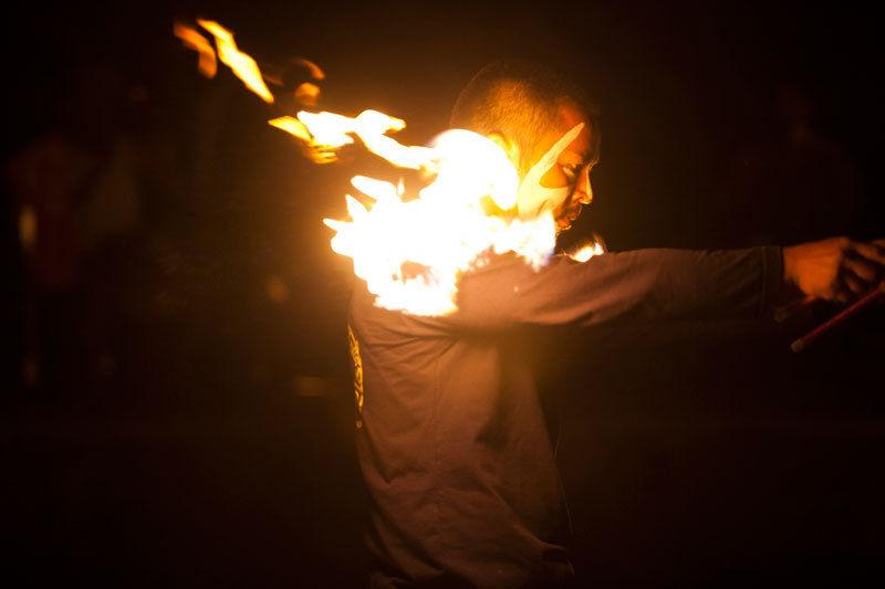 3日間続いた音楽の祭典、最後の締めは 森のステージでのファイアーダンス。