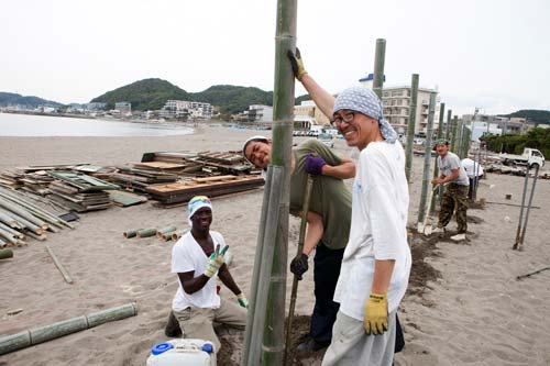 葉山に戻ると、森戸海岸海の家「オアシス」の建築が始まっていた。