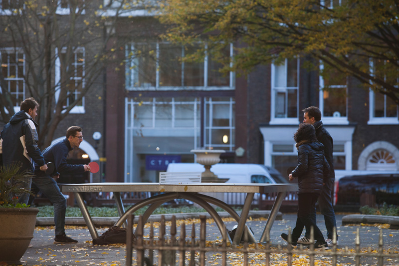 据え置きのテーブルで卓上テニスを楽しむ人たちを、よく見かけた。