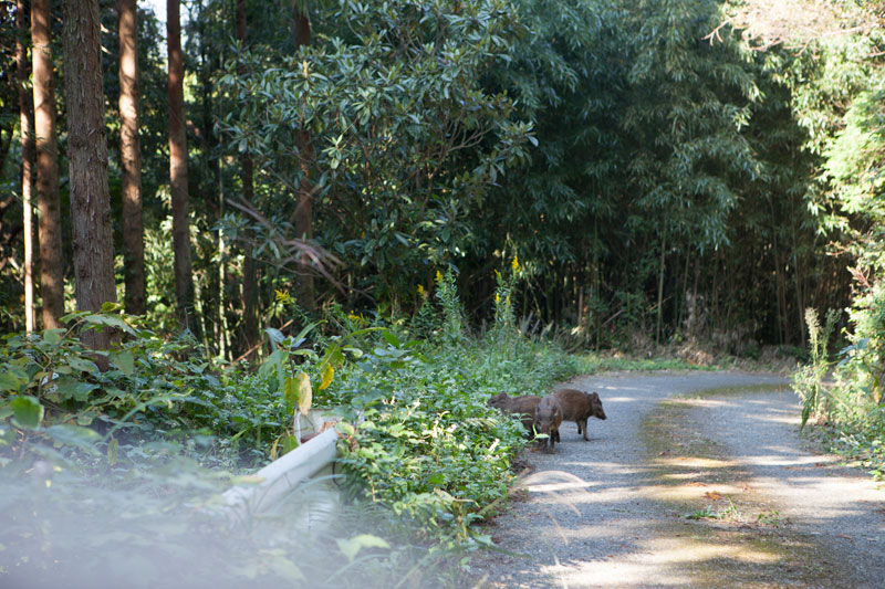 車で山道に入って行くと、ウリ坊が道をあけてくれた。