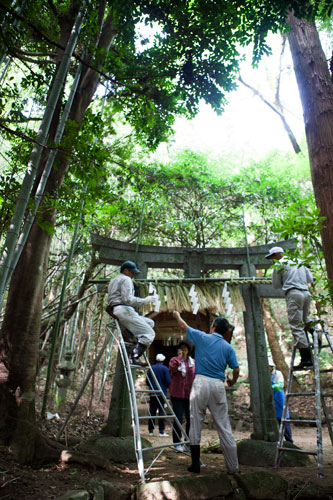 村にある、全ての神社や鳥居の、しめ縄を掛け替える。