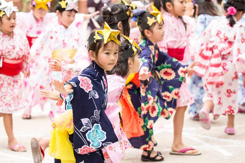 浴衣や甚平など、夏和服を着たこどもたちの愛らしさ。