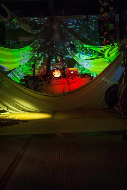 今日は、山の隠れ家でパーティー。 ゴキゲンな隠れ古民家でのDJは、カラヴィンカ・タツイシ。 映像とライティングは、水と火を使っての生ヒラリオン。 かな~り怪しいパーティーのようだけど、実はこれ こどもの日のキッズ・ディスコ。シャボン玉あり~の 餅つきあり~のイベント! 新しい世代の波が、こんなところにも!!