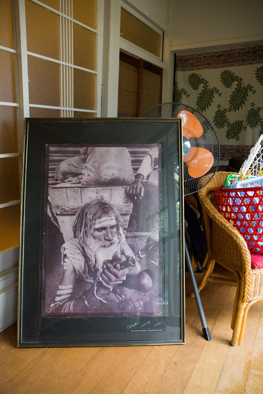 父は定年後、大学で生徒たちに写真を教えながら 鶏卵写真という、卵の白身を使って プリントする技法を研究し、 手すきの和紙を鹿児島から取り寄せるなど、 こだわり抜いた作品を作り、 各地で、写真展をやっていた。 この写真は、インドのサドゥー(修行者)だけど、 当時ドレッドロックスだった僕かと思いました、 などと写真展に来る友人たちに からかわれていたのを思い出す。