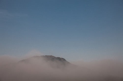 桜も散り始めた、蒸し暑い春の夕方に 突然、長かった冬の最後のあがきが、山から降りてきた。 ドライアイスの煙が立ち込めるように 糸島の小富士「可也山」も、霧に包まれた。 @Itoshima・Fukuoka 2017