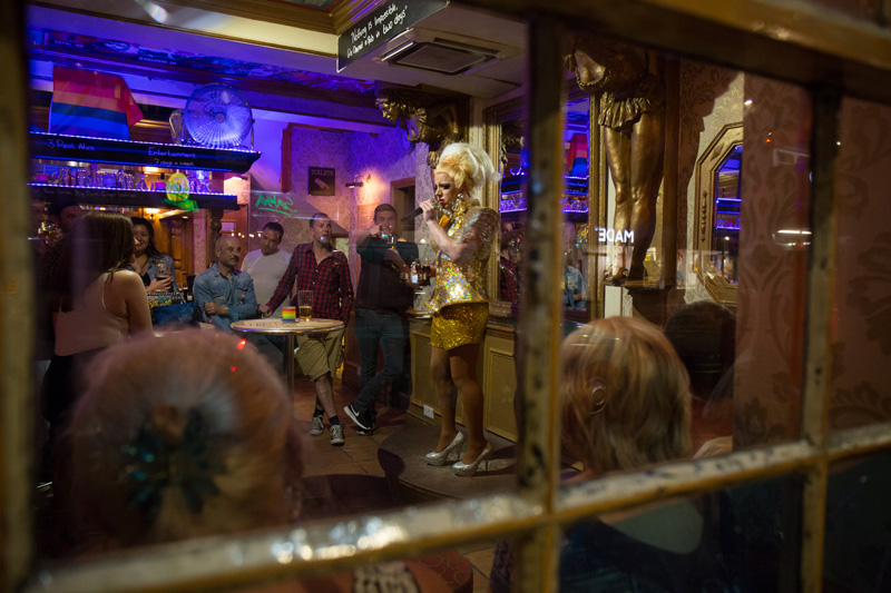 パブで、ドラァグクィーンのおねえさんが何やらライブ中。