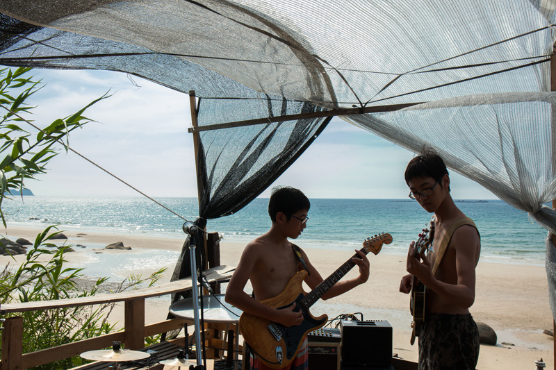 「かや小屋バンド」、中1と中3の兄弟ギター。