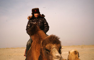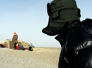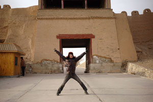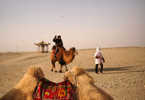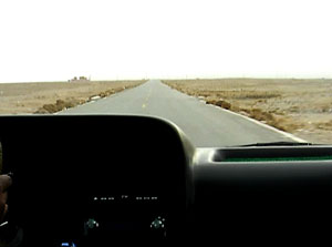 砂漠の中を走り、万里の長城の西の端をめざします。