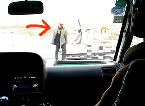 車が近づくと、テントからおじさんが出てきて