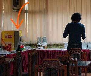 お茶っ葉がセットで出てくるのかにゃ?”」