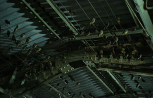 ホームの屋根に、見たこともないような無数の鳥。
