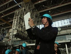 整備工場に足を踏み入れます。いくぜ、みんな!