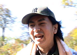 ■ニュース その1■ キノコ狩り、恐怖の迷宮。 第5回 命を拾ったな、いま。 ここで、車はとうとう 荒くれオフロード、ワイルド林間コース、 つまり完全なる山道に入りました。