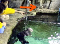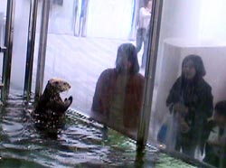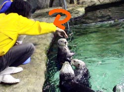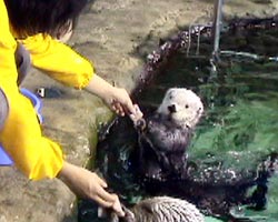 ■ニュース その2■ 海の生きものにフォーリン・ラヴ。 第9回 ふわーっと、ふわーっと さわるんだよ! マリンワールド1日職員体験も、 そろそろ終盤です。 最後に出会う水棲動物は、ラッコ。 警戒心が強い動物ですから、 今日はエサを食べてくれるかどうかすら、 わかりません。 マリンワールドのラッコ担当、高司さんです。 よろしくお願いします。