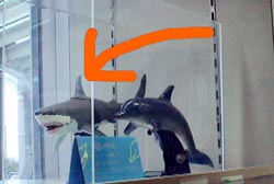 さて、本日の体験はこれでおしまいです。 これから売店に向かいますが、 羽田での痛い教訓をいかし、 今日のおみやげは吟味して選んでください。 合言葉は、いいですか、 「ひとつにしよう、おみやげは!」 やはりサメグッズが気になりますか。 本も「ドッサリ買い」しないようにしてください。 そんなにニコニコしてもだめです。 腹話術で話す番長です。 ぬいぐるみは、あとさき考えて買ってください。 なんだか女子高生の買い物に つきあっている気分になってきました。 結局番長が買ったのは、 サメの4Dパズルでした。 「メガマウスだと思って大事にします」