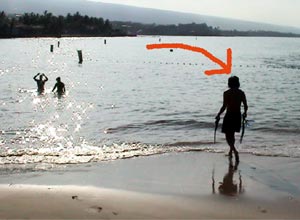 小さなビーチにスノーケルと足ヒレを持ち込み