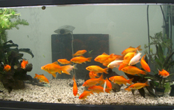 現在、約30匹の金魚が、永田記念水槽の中で、