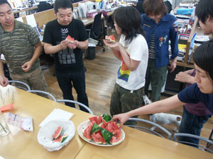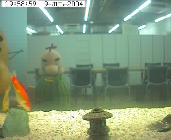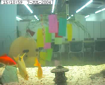 金魚の後ろで、七夕飾りを飾ってくれた方、