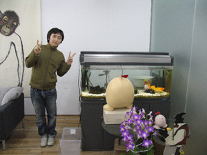 | 引っ越しにつき、しばしお休みいたします。 こんにちは。 すでにあちこちでお知らせしておりますが、 ほぼ日刊イトイ新聞をつくっている 東京糸井重里事務所は 魚籃坂(ぎょらんざか、と読みます)から 青山へと引っ越しいたします。 引っ越しは、11月26日と27日の、 週末を利用して行われる予定です。 と、いうわけですので、 長らく魚籃坂のオフィスを映していた このカメラもいったん終了ということになります。 11月25日の午後過ぎくらいまでは、 引っ越しの、どたばたとした風景が 映っているんじゃないかと思いますが、 とりあえず、新事務所の ケーブルの配線やレイアウトが決まる 11月29日くらいまでは、 このカメラにはなにも映らなくなります。 そして、お知らせがあります。 些細なお知らせですが、 このコーナーにとっては 大きなお知らせです。 金魚水槽は、 新しい事務所に設置することができないのです。 簡単にいうと、水を引っ張ってこれないため、 大きな水槽の維持ができないのです。 この金魚の購入先でもあり、 水槽の管理についていろいろと 相談に乗ってくださっている ジュエルペットさんとも相談したのですが、 やはり、むつかしいだろうとのこと。 そんなわけで、金魚は、 ジュエルペットさんに引き取っていただき、 ジュエルペットさんちの金魚として 暮らすこととなりました。 長く、この風景を、たのしんでくださった方、 どうもありがとうございました。 最初はおたまじゃくしからはじまり、 幾度か代替わりしてきた金魚カメラですが、 今回の引っ越しをもちまして、 ひと区切りということになります。 新しいオフィスがどうなるのか、 まだまだ不確定なのですが 新しい風景をお届けできるよう、 いろいろと企画中です。 今後とも、どうぞよろしくお願いいたします。 金魚水槽管理者の、西田くんとともに記念撮影。 お疲れさまー、西田くん。お疲れさまー、金魚。 永田 メールは、[email protected]へ、よろしくです。 |