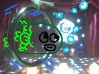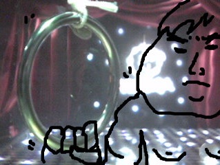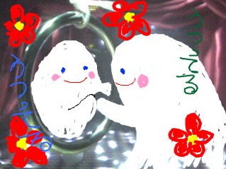 輪っかを鏡に見立てて写ったオバケちゃんは、