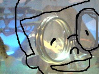 この写真はミドリフグさんの頭が輪の奥にあって、