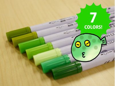 ミドリフグさんを描くのにはこの7色があれば十分です。
