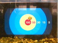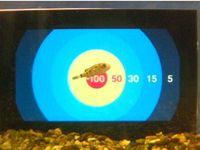 ミドリフグさんをダーツの矢にみたてて、