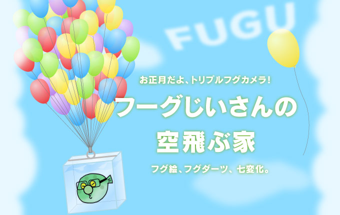 ![]() なんといってもいちばんの特長は 3つのカメラでございます。 フグ水槽をいろんな角度から眺められますので カメラを適当に切り替えてご覧ください。 水槽の向こうに浮かぶのは 色とりどりのカラフルな風船でございます。 こちらは、いまごろ言うのもなんですが、 『カールじいさんの空飛ぶ家』を 意識したものとなっております。 こんなことを言うのはなんですが、 当企画は映画の宣伝とはまったく無関係です。 たんに、関係する乗組員たちが PIXAR社のファンであるというだけです。 話はもどって、この風船、 ヘリウムガスで浮かぶ本物の風船ですから、 休み期間中にきっとフワフワ移動するはずです。 ガスが抜けないような工夫はしましたが、 もしも、全部画面外に行っちゃったらごめんなさい。 |
