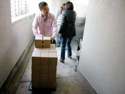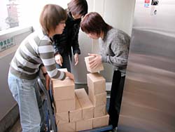 昼下がりのオフィスに電話が鳴った。 AOR西本の席である。 「はい、糸井事務所です。 え? はあはあ、えっ! そうですか! ありがとうございます!」 テンションの高い受け答えに、 職場の誰もがなにごとかと見る。 電話を切った西本が高らかに告げる。 「来た来た来た、もう来た! 紀伊國屋書店から1000冊追加発注!」 驚愕する一同。 だって、紀伊國屋書店で売り出されたのは ほんの2日前のことである。 しかも、全店舗ではなくて、 一部の紀伊國屋書店での販売である。 ──なのに、もう、追加発注? ともあれ、吉報を拍手で迎える一同。 よかったよかった、すげーすげー。 「でも1000冊、どうします?」と 冷静に切り返したのは在庫管理を担当する ナカバヤシである。 「倉庫から出すとなると、 いまの発送作業の予定がくるうかもしれません。 明日には出せますけど、 それだと年内に全国の紀伊國屋に 届かないかも‥‥」 今日中に1000冊を、 紀伊國屋の発送センターに届けなければならない。 しかし、倉庫から出すにはタイムロスが生じる。 すると、西本がひらめいた。 「事務所に、明後日送る予定の1500冊がある。 あれを紀伊國屋分に回して、 明後日送るぶんは倉庫から出せば?」 「1000冊も、どうやって?」 「クルマで」 いっそ自分たちで発送センターまで 運んでしまおうという作戦である。 事務所から発送センターまで、 高速を使えば1時間もあれば着くはず。 幸い、社用車のハイエースは空いている。 よしよし、それなら積み込みだ、と 一同は盛り上がりかけたが、 ことはそう簡単に進まなかった。 「運転手はどうするの?」 「うーさんは?」 「風邪でダウンしてる」 一難去ってまた一難とはこのことである。 悪いことに今日はバンを運転できる人間がいない。 ていうか、そもそも力仕事を任せられる 男手がほとんど出払っているのだ。 途方にくれる乗組員一同。 ──そのときだった。 「あたしが運転しよう!」 「あかりさん!」 「バンの運転経験は?」 「ない!」 どひゃー、とずっこける一同。 「けど、なんとかなるやろ」 とにかく時間がない。 細かいことは現場対応。 「なんとかなるやろ」を合い言葉に、 一同は行動に移った。 そういうわけで12月25日、 「女だらけの『オトナ語』配達大作戦」が 決行されたわけである。 どちらさまもメリークリスマス。 事務所の片隅に積まれていた『オトナ語の謎。』。 見るからに弱々しい発送風景です。 手前でふらついているのは、 経理担当のナガサカ。大丈夫かなあ。 ![]() 台車に本を積んでいきますが、 その台車の小ささに呆れます。 大丈夫かなあ。 ![]() とにかくどんどん積んでいこう。 しかし、見るからに計画性のない積み方。 大丈夫かなあ。 ちなみに、ひとつの包みに10冊入ってます。 それが100個必要です。おいおいほんとかよ。 ![]() 台車がいっぱいになったら、下へ運べ。 男性陣でただひとり作業に参加したシェフ武井。 ただし、運転免許なし。 ![]() エレベータが下についたら押せ! 手の空いてるやつは先回りしろ! 写真左を走り抜けているのは、 事務所に居合わせた、ゆーないとさん。 ![]() 下に運んだら、バケツリレーだ! 「アイデアがないときは努力で補え!」 というのは我が社のモットーのひとつ。 発言者はもちろんdarlingこと糸井重里。 ![]() とりあえず、半分ほど積んでみたところ。 いやはやなんとも素人くさい積み方である。 いわゆる金の延べ棒状態。 こんなんで大丈夫かなあ。 ![]() 「かまへんかまへん」 とにかく積んで、あとは現場対応! しゃにむに積み込む、あかりとオガー。 ふと我に返って心配そうな、りかとナガサカ。 とりあえず、積み込み完了!! いざゆけ我らのハイエース! 紀伊國屋発送センターへ! ![]() 「ほないくで!」 と言ったかどうかは知らないが、 通天閣あかり、ドルルルとエンジンを吹かし、 ハイヒールでアクセルを踏む。 慌てて後部座席に飛び乗るナカバヤシ。 ドルルルル、ドキャーーン! 我らがハイエース、 国道1号線を猛スピードで北東へ走る!! すると、後部座席では‥‥。 ![]() 「きゃーーーー!」 言わんこっちゃない。 揺られて、本が右へ左へ。 おさえるナカバヤシも右へ左へ。 ![]() 「しっかりつかまっときや!」 ガシュッ、ズガッ(稲妻シフトチェンジ)! ギャグァワワワァーン!!!! ![]() 「きゃーーーーー!」 ![]() 「どけどけどけーい!」 ガンッ、グワィィィィン(逆ハン切ってドリフト)! ブシュワァァァァアアアッ!! ![]() 「きゃーーーーーー!」 (以下、1時間ほどくり返し) ![]() 「む! 近い! 近いで、ナカバヤシ!」 ![]() 「見えたでーー!」 ![]() 「ほんとだーーー! 紀伊國屋だーー!」 ![]() グキャキャキャキャァアアアッ! (カウンターを当てて制動) ![]() 「おろせ、ナカバヤシ!」 「はい!」 ![]() 「違うがな、こう持つんや!」 「ははぁ、なるほど!」 ![]() 「もうチョイやで!」 「はいなっ!」 ![]() 「これで全部か?!」 ![]() 「ひい、ふう、みい、よお、 ‥‥さんびゃくにじゅうよん、 ‥‥ろっぴゃくとんでなな、 ‥‥せん! 全