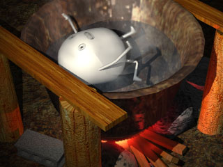 これは、いきものくんが五右衛門風呂に飛び込んだ後