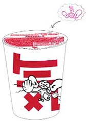 この企画を推し進めるにあたって 日清食品広報の松尾さんと一緒に気功教室に行って 実際にカップヌードルに 「気」を入れてもらってテストもしてみました。 当時のコンテンツでは掲載してないんですけど カップヌードル全体に「気」がはいっちゃうと なぜかカップヌードルの味が、どういうわけか いつもの味より弱くなるんです。 これは「気」が、何らかの影響を 及ぼしているのでは? と判断した我々は 「おサルのなると」こと「サルと」だけに 「気」を入れれば、 全体の味に変化が無いという実験も 行っていたのでした。 そうやって進めていた「気ラーメン」企画は 発売直前に頓挫してしまいました。 (参考:第十回 気ラーメン座礁する!) この時ばかりは落ち込みましたが 普段、ラーメン屋でラーメンを食する時、 後半に酢を入れることが多いというdarlingによる 「ラーメンにレモン果汁を入れる」アイデアが その危機を救いました。 な、なんと、レモンの酸味がスープのコクを さらに引き立ててくれることが、 あらためてスタッフ一同を感動させました。 しかも、後味もさっぱりする! ちょっとしたアジアンテイストも感じられるし。