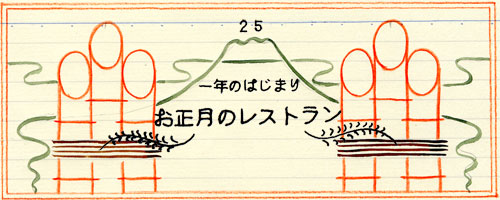 レストラン、飲食店というのは大変な職業です。 普通の人が遊ぶときに働かなくちゃいけない。 街中が穏やかで楽しい表情に包まれているときに限って 忙しい、という職業です。 街と店のギャップが一番激しい時期、 それが年末年始であるということ、 どうか忘れないで下さいネ。 お正月に休業する飲食店、増えてきました。 ファストフードやファミリーレストランのような チェーンストアは別として、 正月三が日くらいは休みを取るのが 外食産業でも当たり前になりました。 けれど、大晦日の飲食店はたいてい大忙しです。 蕎麦屋さんなんかはその代表ですけれど、 でも一般的に年末の数日間は どんな飲食店にとっても目の回るように忙しいものです。 和食のお店なんかだと12月に入ってから ずっと宴会続きで、もう疲労困憊で年末を迎える、 というような状態が普通であったりもします。 そうして年があけ数日間の休みをとって、 久しぶりの営業開始。 それが新年のレストランの気分です。 だからボクはこの時期のレストランでは必ず元気に 「あけましておめでとうございます」 と言うようにしています。 1月の中旬くらいまでは まだ町中はお正月気分ですから、 「あけましておめでとう」。 昨年年末は本当に大忙しで大変だったでしょう? と、ねぎらいの気持ちをタップリ込めて 「あけましておめでとう」、 とそう言うようにしているのです。 お正月にはお年玉がつき物です。 お客様であるワタシ達から、 忙しい年末を一生懸命頑張ってワタシ達を 今、もてなしてくれているお店の人たちに対するお年玉。 ご祝儀です、言ってみれば。 なんでもいいです、まず何か一つ、 必要ではないものを頼んでみる。 ビール一本、シャンパン一杯。 それで「おめでとう」。 気持ちも伝わりますし 何よりその界隈がめでたい感じに包まれます。