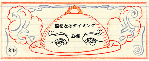 例えばフランス料理のレストランに行ったとしましょう。 天井からはシャンデリアがぶら下がり、 ウェイターが壁に張り付くように立ち並ぶ、 いわゆる高級フランス料理店と呼ばれる店です。 緊張します。 1時間から1時間半ほどの 息詰まるような濃密な時間ののち、 メインディッシュが運ばれる。 お皿の上に銀の蓋いがのっけられて運ばれてくる。 目の前に置かれると磨きこまれて、 自分の顔が写りこむほどにまぶしく輝く 帽子のような蓋いです。 これをワザワザ自分であけて 中を覗き込む人はいないですネ‥‥多分。 どんな料理が中に入ってるんだろう。 テーブルのみんなが息をのんで見つめます。 それまでの楽しげな会話はなりを潜めて、 声を潜めた内緒声のヒソヒソ話が テーブルの上を飛び交う中、 一つ、また一つ銀色の帽子をかぶったお皿がセットされる。 そして最後のお皿がタンとテーブルの上に置かれた瞬間、 アン・ドゥ・トロアでいっせいに蓋が取られる。 壮観です。 少人数の会食であれば お客様一人の一人のウェイターが横に立ち、 それでいちにのさんで蓋を取る。 大人数の時には二席に一人の割合で、 それでも両手をつかって同じタイミングで蓋が開く。 おおっ、って歓声が上がりますネ、その瞬間に。 晩餐会みたいな正式な会食では さすがに声はあがりませんけど、 息を呑むというんでしょうか、 会場全体がどよめきに包まれる。 暫くするとそのどよめきは、 初めて目の前に姿を現した料理に対する 賛辞にとってかわられる。 テーブルを囲む人たちが目と目を合わせて、 楽しげな笑顔をかわし、それから思い思いに感想を語る。 そしていよいよ味わう‥‥、という手順をとるのです。 蓋をかぶって出てくる料理、というのは 「食べる人に驚きをおねだりしている」料理であるのです。 つまり蓋は、料理の温度を保つ以上の役割をもっている、 ということになるでしょう。 驚きのタイミングはみんな一緒に。 抜け駆けは失礼です。 このお椀の中にはどんな料理が、 どんな姿で私のことを待っているんだろう、 とワクワクしながら料理が揃うのを待つ。 楽しいです。
