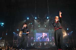 | 総武線猿紀行第210回 「氣志團と千葉の伝統 その2」 氣志團のインディーズにおけるファーストCD 「房総与太郎 路薫狼琉」 (ぼうそうよたろうロクンロールと読む) ![]() は今から考えると、 新人バンドとは思えない凄い内容でした。 帯コピーはこんな感じ。 「こんな不良達(ポテト)は見たことねえ! 七夕野郎もシャバ僧どもも、心震わせて泣けばいい、 何度だって言うぜ。これが日本の答えだ!」 (ヤンクロックDJケン坊) 不良をポテトという言い回しは知りませんでした。 七夕野郎やシャバ僧も知りません。一体だれなんだろう? ヤンクロックとは、おそらくヤンキーロックのことで、 彼らの造語。好きな言葉です。 ケン坊が果たしてだれだかも、知りません。 そして、彼らは立派に日本の答えのひとつになりました。 5万人近くを収容した会場には子供連れの、 オヤジというには若いお父さんも目立ちました。 そうです、ヤンキーは早く結婚して、子供を作るのです。 その意味では、 ヤンキーっぽい家族は会場にいたということですが。 しかし、東京ドームにやはり、横浜銀蝿のような 往年の本物のヤンキー姿はいませんでした。 まるでKISSファンのような 氣志團のコスプレの人たちは多数いましたが。 その多数は女性なんですよ。 ![]() さて、彼らの新作ベスト「死無愚流 呼麗苦衝音+3」 のジャケットでもおなじみのこの氣志團マークです。 ![]() ライブでもテーマ的なビジュアルである、このアイコン、 実は、これはインディーズの このデビュー盤からあったものなのです。 デビューCD盤面からすでに、 この洗練されたマークによって彩られていた。 おそらくプロの手によるものでしょうが。 インディーズのバンドで、自分達の力だけで、 ここまでビジュアルの意識を高くして、 完成しているバンドはかつてありませんでした。 彼らの志は、インディーズのうちから メジャーとその上を見ていたとしか思えません。 僕が初めて彼らを見たのは、 2001年12月のリキッドルーム、 現在の所属事務所に入ってすぐのライブ。 つまりまだほぼ自力のライブでしたが、 新宿六本木のショーパブでもここまでやらないだろう? という踊り、振り付けにはウナらされました。 しかも、ジャンルが良くわからない。 もちろんハウスなど、黒人系じゃないし、 ジャズダンスじゃないし。 いちがいにオカマ系でもないんだよな。 しいていえばチアガールの動きとかを取り入れた、 独自の振り付けに思えるんですが。 こんなに踊るヤンキーはもちろん、 かつて存在しなかったでしょう。 その振り付けの中心は早乙女光という、 ダンス専任のメンバー。 ダンス専任のメンバーがいるロックバンドは、 世界ではマンチェ系のハッピーマンデイズが有名です。 ハッピーマンデイスの専任ダンスメンバーは、 麻薬でヨレヨレの メチャクチャダンスを踊るだけの存在、べス。 彼は他はなにもしないのですが、 ラリパッパのクラブパーティの象徴的存在として、 なくてはならない伝説となりました。 それ以後も、ダンス専任メンバーがいるバンドは なかなか現れませんでした。 彗星のように現れた光の場合は、 MCこそしませんが (しゃべると「オリャフォフェイシューダ」みたいに なにいってるかわからない) キチンと振り付けします。 が、やはりロックバンドで踊りだけの人は、異様な存在感。 氣志團では、現在本当に、一番人気だそうです。 その踊りはあのどおくまん先生の 「嗚呼!! 花の応援団」という漫画のイメージそのままです。 ![]() 「チョンワチョンワ!」と暴れまわる 青田赤道のあの漫画です。 といっても、80年代以前の方しか知らないでしょうが。 文化とは、本当に面白いものです。 暴走族が発生して約30年です。 カミナリ族ではない、 今風の暴走族の存在が頭角を現したのは、 72、3年からのようです。 「嗚呼!! 花の応援団」もそのころ生まれました。 実は暴走族の登場は、 学生運動の退潮とリンクしているのです。 そして30年、ヤンキー文化を タイムスリップグリコのようにミニチュア化したような 氣志團が現れたのです。 横浜銀蝿のような人たちは 本当にいなくなってしまったんでしょうか? ヤンキーは、氣志團のようにギャグの多いコンサートには アキれて来ないという関係者の説もありました。 矢沢永吉さんのコンサートに コントコーナーはありませんから。 そう。彼らは4時間にわたって 本当にライブを行ったのです。 しかし、そのうち約半分はバラエティでした。 それもかなり面白い。 彼らのマネージャー、 明星(みょうせい)さんという女性が 小林幸子顔負けの衣装で出てきて アンルイスの「WOMAN」を歌う。 このマネージャーもまた、歌と踊りが完璧! 衣装から微熱DANJIという、 氣志團の肝入りでデビューした、 少年隊のような3人組も出てくる。 これとマネージャーでさらにギャグ15分。といった具合。 それもまた完璧なんだな。 このバラエティコーナーでは、 いつもは立ったまま演奏するだけのベー