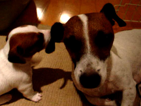 「ママのみみ。」 生後3週間すぎ。 ルーシーのみみが気になるサンコ。 「ひらひらしてるけど、これなんだろ」 そのよこで、ニコとヨンコはオッパイタイム。 みみにあきたサンコは、ゴロゴロします。 「つまんなーい」