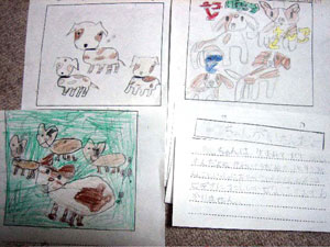 ルーシーと三匹の仔犬たちを
