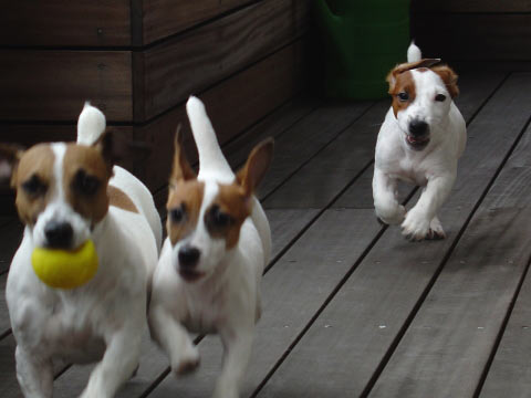 ベランダのはしからはしへ、投げたボールを持ってきます。