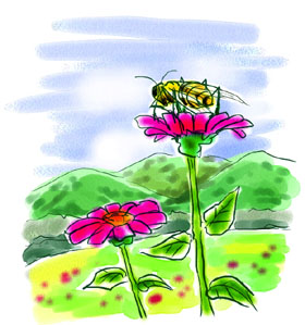 雄バチが一匹、景色を眺めつつ蜜をなめている。