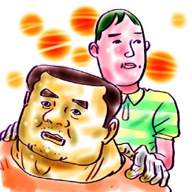 ガタイのいい父兄の肩をもんで