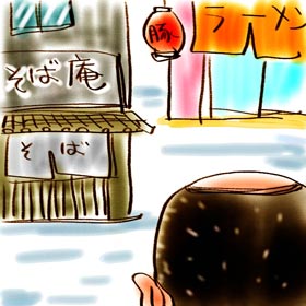 作者の頼みの綱は「蕎麦・うどん屋」なのだが、