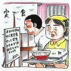 出前途中に、和定食屋の本日のおすすめボードの前で